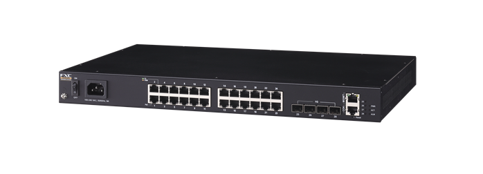 The FXC5628PE is equipped with 24 10/100/1000M RJ45 ports and four 1000M SFP slots. Each RJ45 port complies with the IEEE 802.3af/at standard, allowing it to provide up to 30W of PoE power per port, with a maximum of 450W for the entire device. The PoE alive check function enables you to monitor the status of PDs (Powered Devices) to build a stable network. Furthermore, its diverse QoS capabilities help in creating a secure and comfortable network environment.