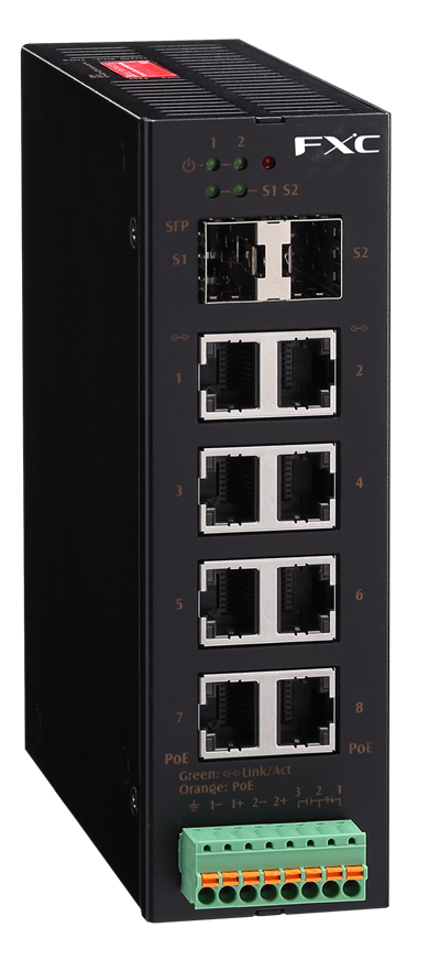 This ruggedized industrial Ethernet switch features IEEE802.3af/at/bt-compliant PoE and is designed for easy deployment in harsh environments where installation space is limited.