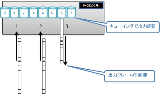#3から出力するフレームの最大帯域は10Mbpsで、キュー3は1Mbpsの超過パケットは破棄、キュー5も1Mbpsで超過パケットは破棄しない。