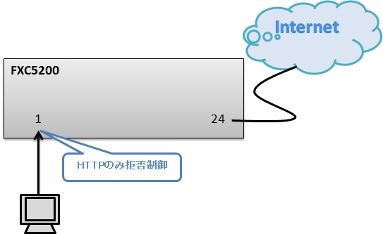 FXC5200(config-ace-1)# port 1/1 インタフェース番号はACLに設定する