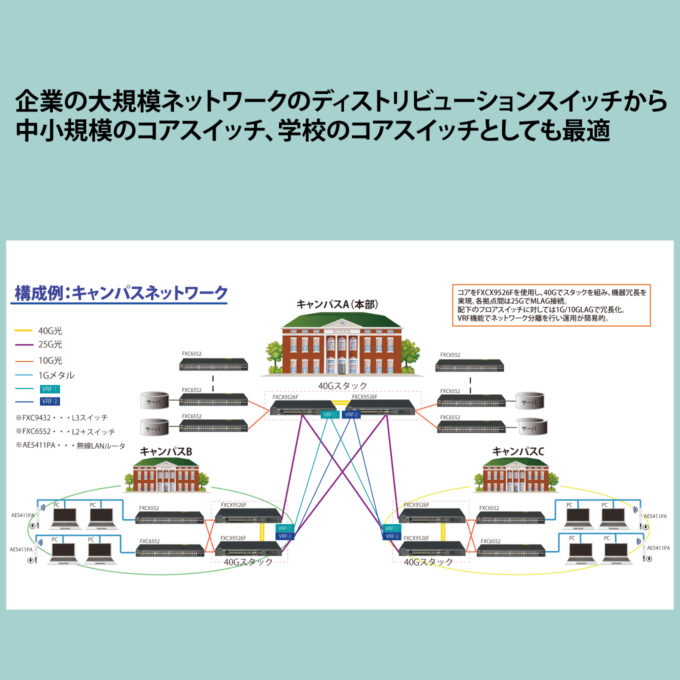 FXCX9526F は、アップリンクとして、40G対応可能な QSFP+を2スロット搭載したL3スイッチです。