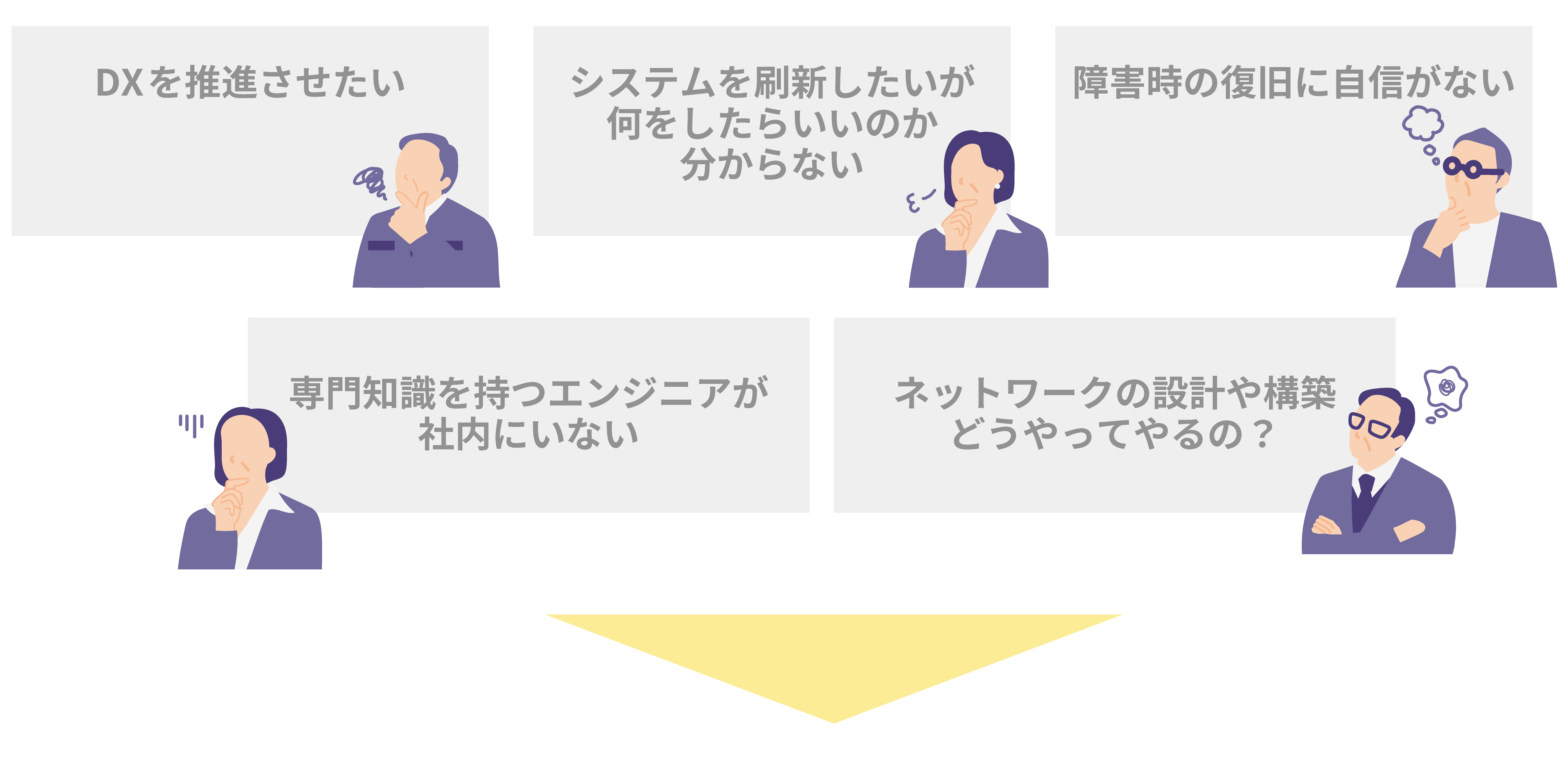 ネットワーク診断からネットワーク設計、セキュリティ対策、構築・導入、LAN工事・施工、運用サポート、研修プログラムまで ネットワークに関わるあらゆるご相談をワンストップでお受けするサービスです。 |