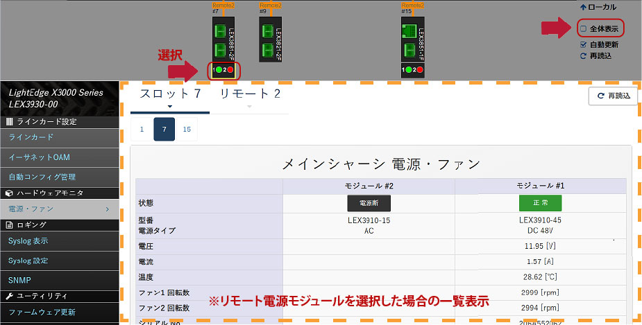 そのため、リモート拠点の電源モジュールの異常が見られた場合は対処できるように、センター拠点側にて、リモート拠点の電源モジュール状態を把握したい。
